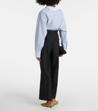Product Details - Material: 100% cotton - Care instructions: dry clean - Made in Romania - Designer color name: Black - Closure: zipper fly, button and hook fastenings - Pockets: side slit pockets, back pockets - Item number: P00407160 Size & Fit - Fits large to size - we recommend trying one size smaller - Non-stretchy fabric - Tapered leg - High-waisted - The model seen in the picture is 178cm-5'10" and wearing a size IT 40
