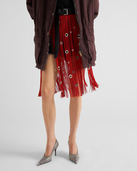 Midi-skirt with fringe and grommet embellishment