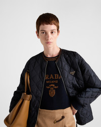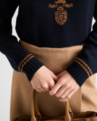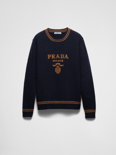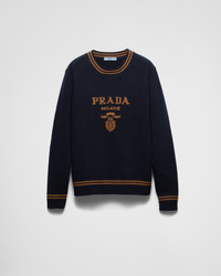 The classic silhouette of this crew-neck sweater is made of soft, light wool and cashmere blend yarn. The design, with a ribbed knit crew neck, cuffs and hem, is characterized by the intarsia knit that animates the style, revealing the Prada logo in a contrasting shade. - Product code: P24G1V_144M_F0QV1_S_232 - Intarsia knit - Menswear fit - Ribbed knit crew neck - Raglan shoulder - Ribbed knit cuffs and hem - Intarsia logo - Imported - The model is 178 cm tall and wears a size 38 Height: 60cm MATERIALS Main material: 30% cashmere 70% virgin wool