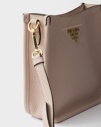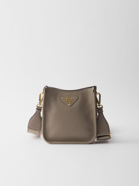 This versatile leather bag boasts a sleek and functional design. The shoulder strap adds a sporty element to the accessory, elevated by the metal logo lettering that stands out on the simple yet distinctive geometry of the iconic triangle. - Product code: 1BH191_2DKV_F02FU_V_7NO - Adjustable and detachable logo-print woven tape shoulder strap, length 95 cm. Maximum length 107 cm - Minimum length 56 cm - Maximum drop 60 cm - Minimum drop 40 cm - Detachable, adjustable leather shoulder strap, length: 100 cm - Metal hardware - Metal lettering logo on the front - Magnetic flap closure - Logo-print nylon lining with card slots - Imported Height: 20cm Width: 19cm Length: 6cm MATERIALS Main material: Calfskin