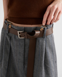 The duality between an elegant, feminine silhouette and menswear-inspired details defines the design of this skirt embellished with a refined leather belt. - Produktcode: P102LK_15DK_F0308_S_OOO - Pencil silhouette - Lined garment - Front and back slit - Front button closure with hook - Angled front slash pockets - Back welt pockets - Belt detail - Eingefuhrt - The model is 178 cm tall and wears a size 38