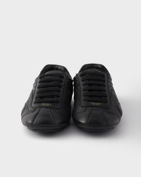 Presented in 2005 for the Linea Rossa collection, Montecarlo sneakers combine style and comfort in a sophisticated and innovative design. In this new interpretation, the footwear returns with a soft, flexible upper in nappa leather. The silhouette inspired by driving shoes is characterized by deconstructed soles that give the shoe a light look and sleek aesthetic. - Product code: 1E247O_EFX_F0002_F_DD10 - Upper with decorative stitching - Leather lining - Screen-printed Prada Milano logo - Flat laces closure - Light, flexible rubber sole characterized by a visible lug tread that extends 05 mm beyond the upper - Removable leather-covered insole - Imported MATERIALS Main material: Lambskin