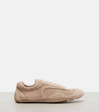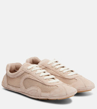 Prada takes Italian heritage into a distinctly modern direction with a streamlined and fashion-forward approach. The Montecarlo Re-Edition 2005 sneakers are expertly crafted with suede trims, breathable mesh paneling, and light, flexible rubber soles. Product Details - Upper: leather (suede), fabric - Lining: fabric, leather - Sole: leather insole, rubber sole - Color: pink - Toe shape: round toe - Made in Italy - Includes: shoe box, extra laces, dust bag - Designer color name: Powder - Item number: P01149774 Size & Fit - True to size - European sizes