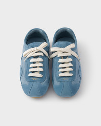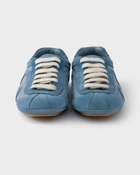 Presented in 2005 for the Linea Rossa collection, Montecarlo sneakers combine style and comfort in a sophisticated and innovative design. In this new interpretation, the footwear returns with a soft, flexible upper in suede and Re-Nylon. The silhouette inspired by driving shoes is characterized by deconstructed soles that give the shoe a light look and sleek aesthetic. - Product code: 1E247O_D7C_F0637_F_D010 - Leather lining - Screen-printed Prada Milano logo - Flat laces closure - Light, flexible rubber sole characterized by a visible lug tread that extends 05 mm beyond the upper - Removable leather-covered insole - Imported MATERIALS Main material: Calfskin