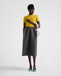 Modernist geometric shapes and volumes create the silhouette of this midi-skirt, a design with dualistic details between past and present, sartorial rigor and sophisticated femininity. - Product code: P118Y_15K8_F0002_S_OOO - Full skirt - Lined item - Center-back zipper closure with hook - Imported - The model is 178 cm tall and wears a size 38 Height: 80cm MATERIALS Wool