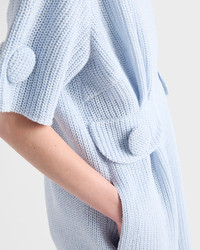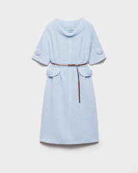 The Fall/Winter 2025 collection explores the concept of femininity and redefines its symbols, starting with the dress. Made from mouline wool, this design blends vintage-inspired touches with new proportions and refined details. Tone-on-tone oversized buttons enhance the soft silhouette, expressing a relaxed and contemporary elegance. - Product code: P3Q79K_18D4_F0A0E_S_OOO - Loose fit - Lined garment - Boat neckline - Short sleeves - Flap pockets - Back slit - Straight hem - Imported - The model is 180 cm tall and wears a size 38 Height: 110cm MATERIALS Main material: 17% polyester 83% wool