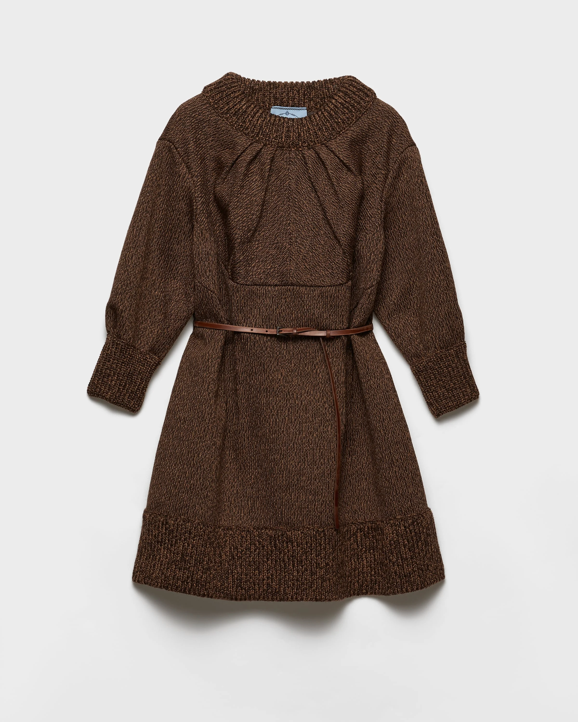 Soft, oversized lines form the silhouette of this dress made of mouline wool that adds structure and dimension to the design. New proportions redefine the codes of femininity, suggesting relaxed, contemporary elegance. - Product code: P3Q80K_18D8_F0AT3_S_OOO - Loose fit - Lined garment - Round neck - Long sleeves - Straight hem - Imported - The model is 180 cm tall and wears a size 38 Height: 85cm MATERIALS Main material: 18% Polyester 82% Wool