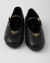 These nappa leather ballerinas with a tapered silhouette express elegant, feminine charm. The shoe with a round toe and rubber sole is defined by classic lines and sophisticated details and is embellished with the enameled metal triangle logo. - Product code: 1F793N_038_F0002_F_005 - Upper with strap and logo-engraved metal buckle - Enameled metal triangle logo - Monoblock rubber sole, 05 mm, with hot-stamped logo - Imported MATERIALS Main material: Lambskin