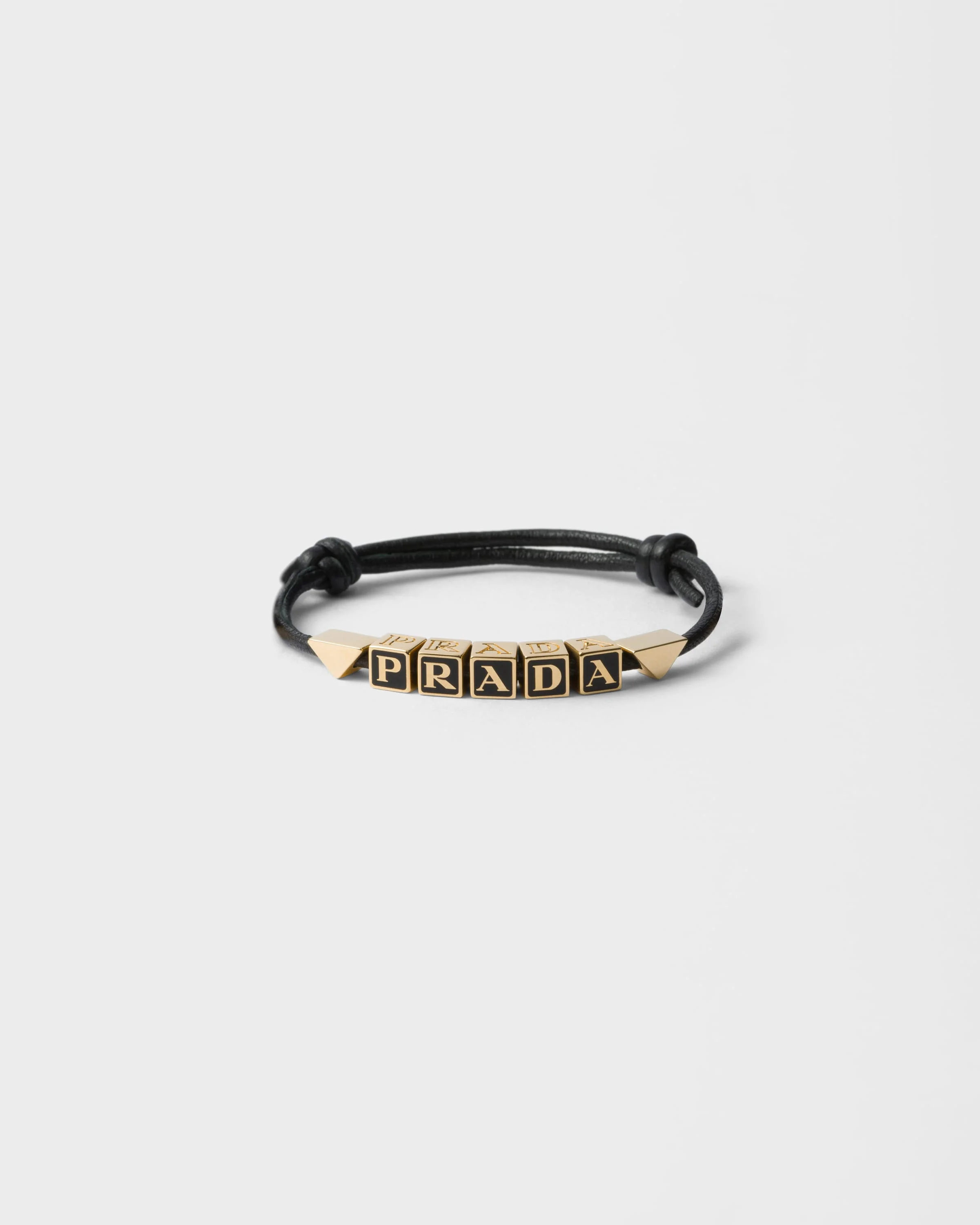 This bracelet made of nappa leather combines essential geometric shapes in a dynamic and modern design. The accessory is embellished with the enameled metal lettering logo. - Product code: 1IB522_038_F0002 - Enameled metal lettering logo - Imported MATERIALS Main material: Steel
