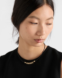 Playful details embellish this nappa leather choker with a slim design decorated with the enameled metal triangle logo. - Product code: 1IC285_038_F0002 - Lobster claw clasp - Enameled metal lettering logo - Imported MATERIALS Leather