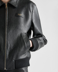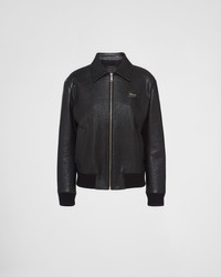 This jacket with a regular fit combines sleek lines and the casual personality of nappa leather. The logo label patch adds an iconic touch to the garment. - Product code: 58A143_13C3_F0002_S_232 - Lined - Regular fit - Front zipper closure - Shirt-style collar - Straight sleeve and ribbed knit cuffs - Wide welt pockets - Hem with ribbed knit trim - Logo label patch - Imported - The model is 178 cm tall and wears a size 38 Height: 62cm MATERIALS Leather