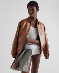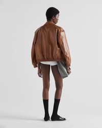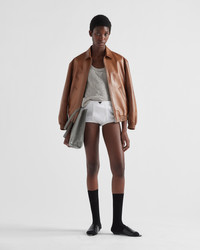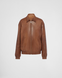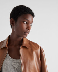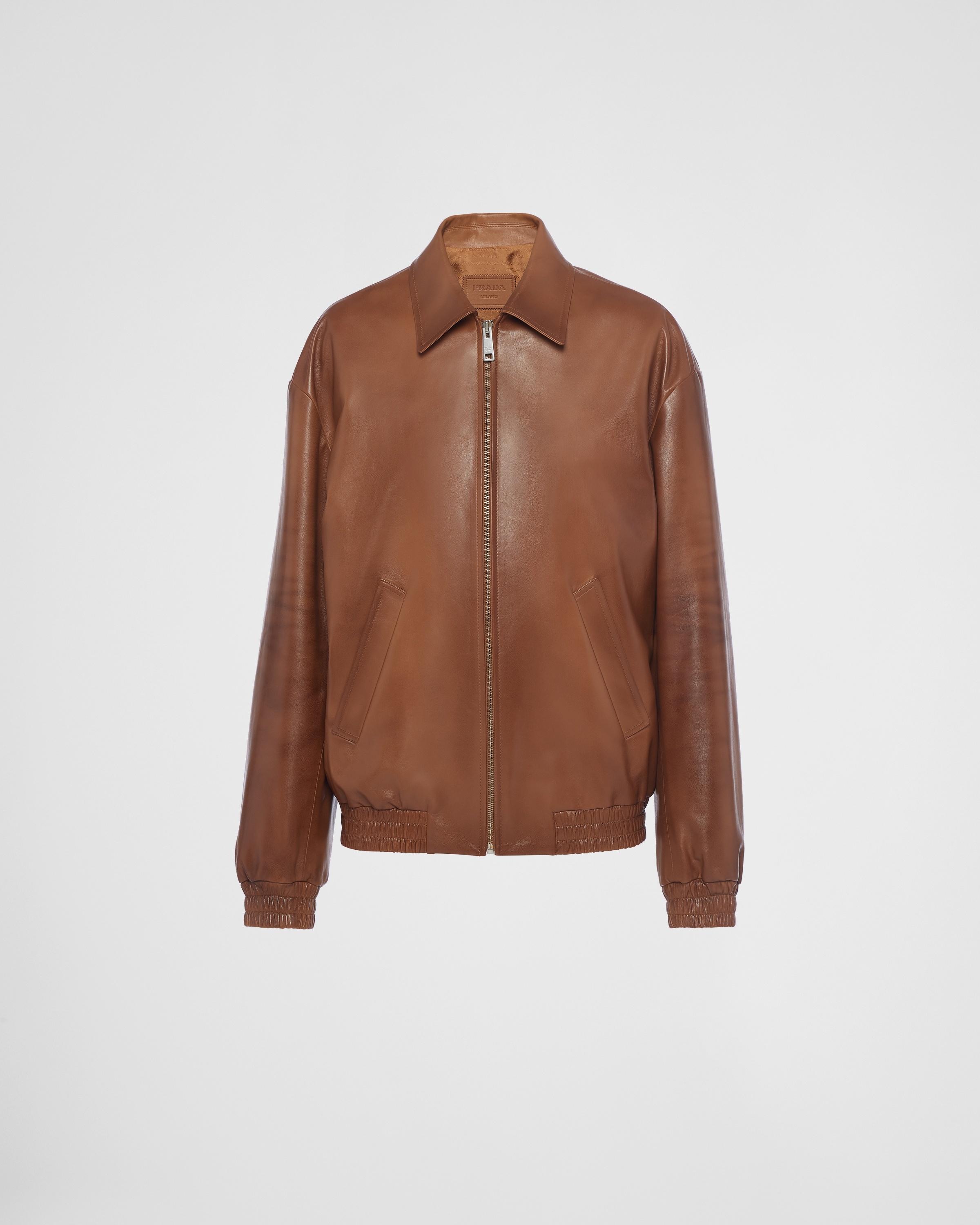 This nappa leather jacket with a boxy fit has a distinct seventies mood. It is characterized by the shirt-style collar, the zipper closure, and the elasticized cuffs and hem that recall the bomber jacket silhouette. - Product code: 58A141_13CR_F098L_S_231 - Lined - Regular fit - Front zipper closure - Shirt-style collar - Straight sleeves - Elasticized cuffs - Wide welt pockets - Elasticized hem - Leather triangle logo on the back - Waxed finish - Imported - The model is 178 cm tall and wears a size 38 Height: 62cm MATERIALS Leather