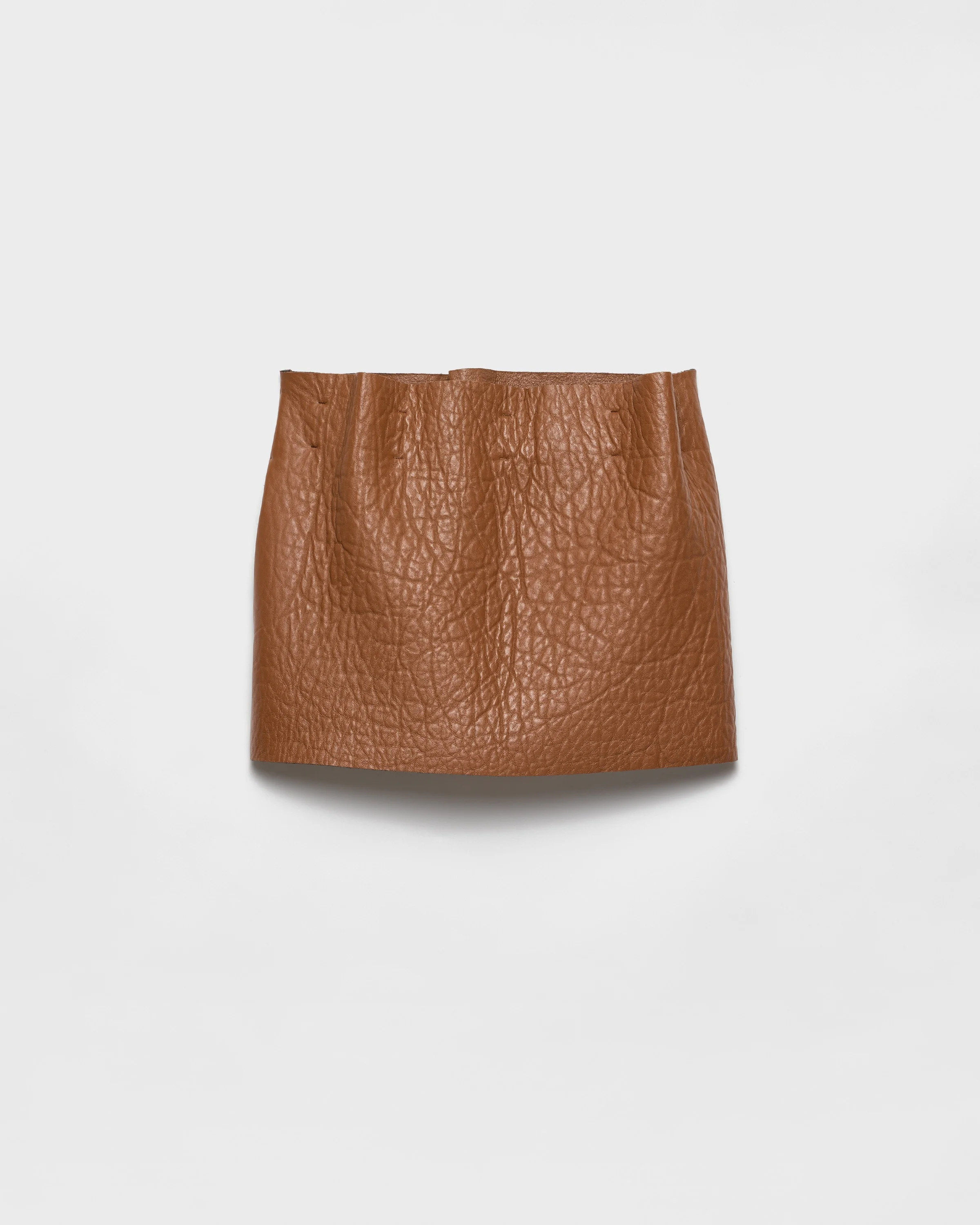 While minimalistic in design, this skirt is elevated by refined artisanal treatments that enrich nappa leather with a unique, rich texture featuring an irregular grain. The elastic waistband adds soft volume, further enhancing the sophistication of this piece. - Product code: 51927_18A7_F0046_S_OOO - Unlined garment - Inseam pockets - Waist with internal elastic - Imported - The model is 180 cm tall and wears a size 38 Height: 35cm MATERIALS Main material: Lambskin