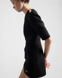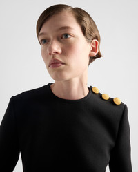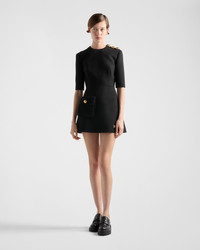 Details with modern allure animate the silhouette of this natte minidress with three-quarter sleeves. The sleek design is accented with shiny gold buttons on the shoulder and a large flapped patch pocket. The leather logo patch completes the garment with a distinctive touch. - Product code: P3K48E_S31_F0002_S_232 - Fit-and-flare - Lined - Round neck - Back zipper closure - Three-quarter sleeves - Flapped patch pocket on the front - Leather logo label - Flared hem - Logo patch on the left side. - Imported Height: 85cm MATERIALS Wool
