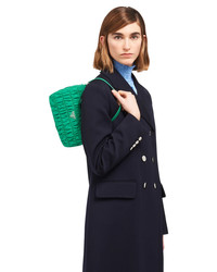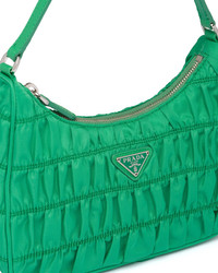 This nylon mini bag has Saffiano leather trim. The minimalist design is enhanced by the metal triangle logo. - Nylon - Saffiano leather trim - Saffiano leather shoulder strap - Top zipper closure - Prada logo nylon lining - Enameled metal triangle logo 18 cm Height 6.5 cm Length 22 cm Width Composition Fabric