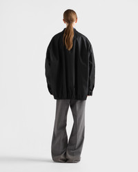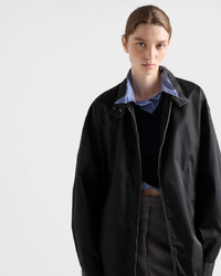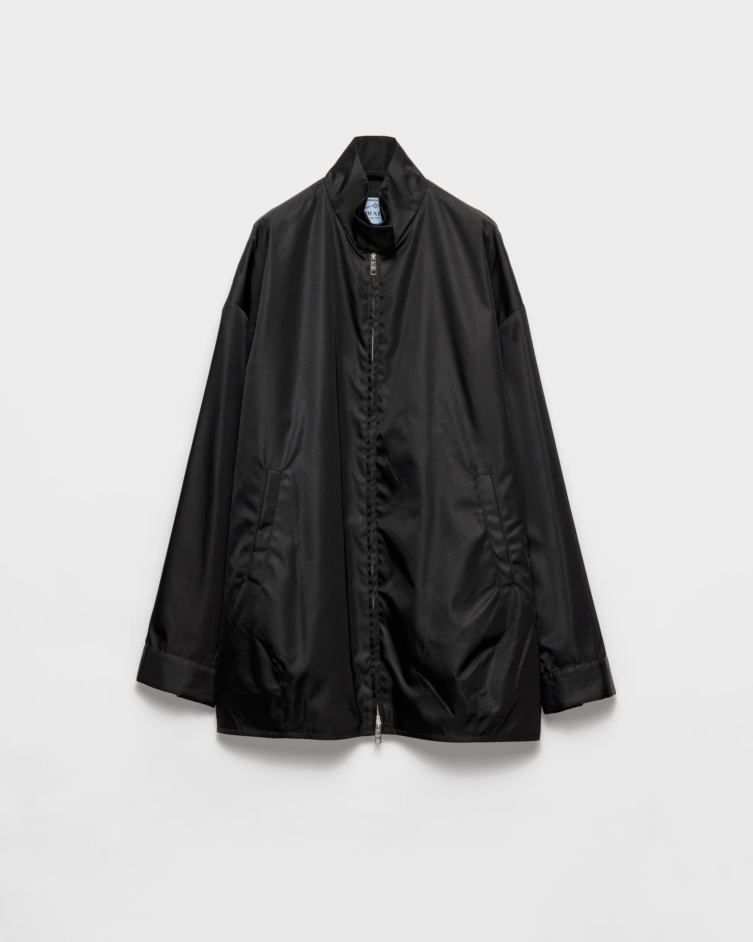 Minimalism and sport converge in this blouson jacket with a sleek design, decorated with the enameled metal triangle logo. The garment with functional details is made of Re-Nylon with a menswear-inspired loose silhouette. For sustainable care to preserve the product's characteristics and reduce microfiber shedding, we recommend not washing the item too often. Let the product air out after every use and have it dry cleaned at a specialized ecological dry cleaners. - Product code: 292250_1WQ8_F0002_S_OOO - Unlined - Long sleeves - Buttoned cuffs - Zipper closure - Welt pockets - Pressed garment - Stand-up collar with hidden buttons - Internal zipper pocket - Conceptual logo with enameled metal triangle - Imported - The model is 178 cm tall and wears a size 38 Height: 78cm MATERIALS Main material: 100% recycled polyamide