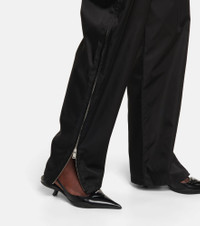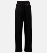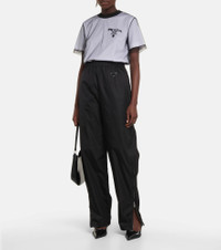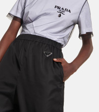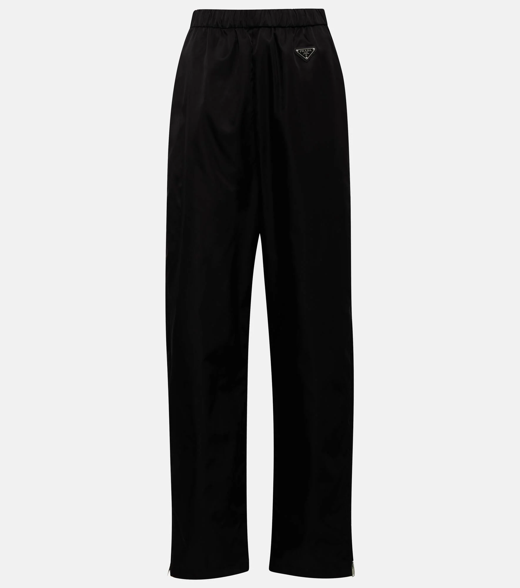 Nylon, Prada's favored utilitarian-chic fabric, is used to create these trackpants. Fitted with an elasticated waistband, they feature the label's coveted triangular logo on the front Product Details - Lining: 66% viscose, 34% silk, fully lined - Elasticated drawstring waist - Designer color name: Nero - Details: 100% calf leather - Made in Italy - Care instructions: dry clean - Zipped ankle cuffs - Item number: P00623563 Size & Fit - Fits large to size - we recommend trying one size smaller - Elasticated waist - Tapered leg - High-waisted - The model seen in the picture is 178cm-5'10" and wearing a size IT 38