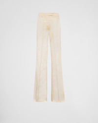 These organza pants transform a classic tailored garment into a bold, contemporary design. Playing with the characteristic duality of Prada collections, the fluid, semi-sheer style is characterized by the flared leg that emphasizes the figure. - Code du produit: P253H_1344_F0F24_S_OOO - Flared fit - Zipper fly with hook - Importe - The model is 179 cm tall and wears a size 40 MATERIALS Silk