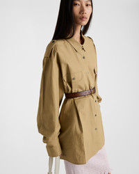 The pragmatic nature of utility wear inspires a reinterpretation of the cotton shirt, presented with an oversized silhouette decorated by the tonal triangle logo. - Product code: P496H_16TE_F0241_S_OOO - Menswear fit - Classic collar - Front button closure - Sleeves with shirt cuff - Flapped patch pockets with button - Fabric triangle logo - Straight hem - Pressed garment - Imported - The model is 178 cm tall and wears a size 38 MATERIALS Main material: 100% cotton