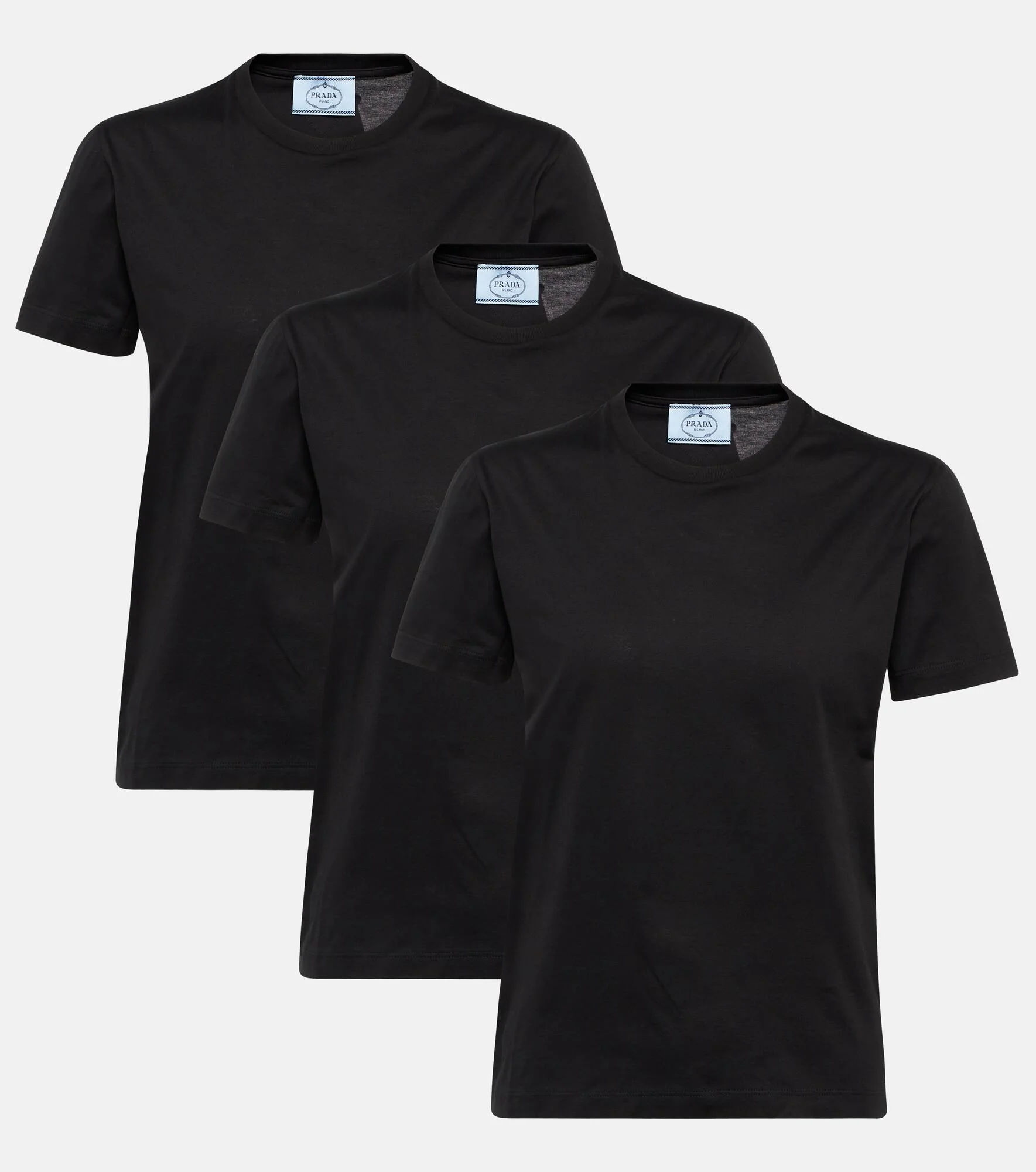 Cover your basics bases in the most luxurious means possible with this pack of three T-shirts from Prada. Classic in black with timeless crew-neck, short-sleeved cuts, the trio has been made from cotton for optimum comfort. We think this set makes for a brilliant gifting option as well as the perfect treat for yourself. Product Details - Material: 100% cotton - Care instructions: hand wash - Designer color name: Nero - Item number: P00400734 Size & Fit - Fits small to size - we recommend trying one size larger - Close fit at the bust - Close fit at the shoulders - Straight fit - Falls to the hip - The model seen in the picture is 178cm-5'10" and wearing a size S
