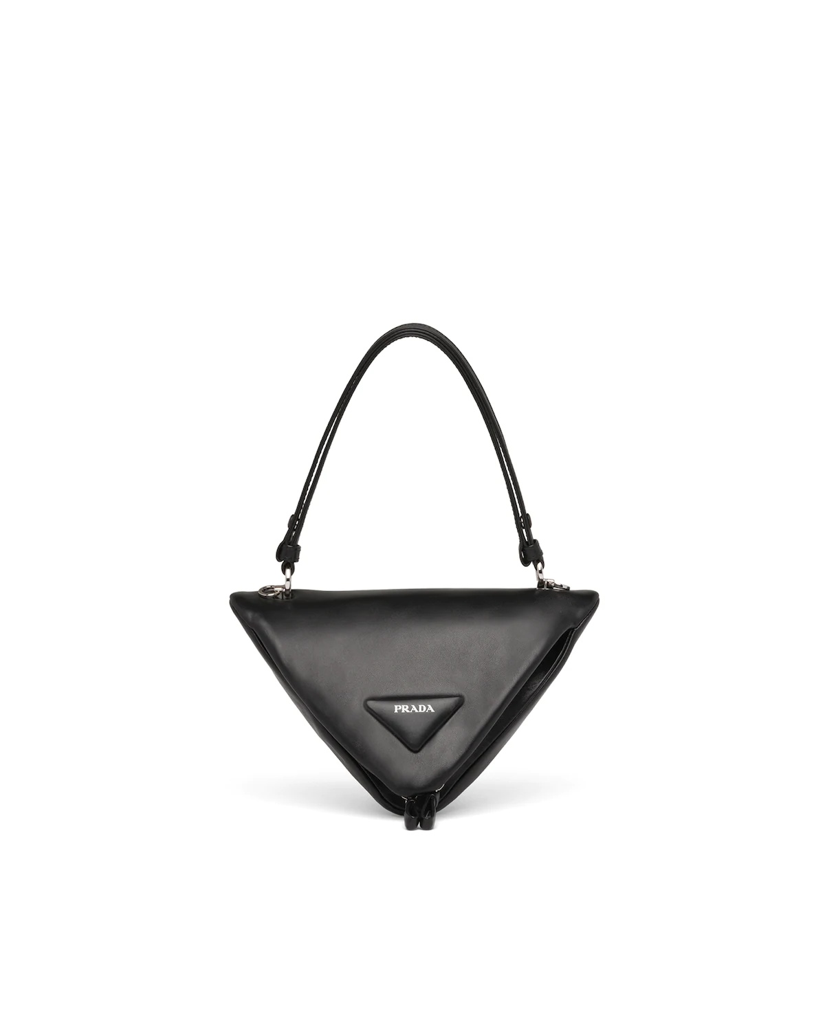 padded nappa leather top-handle bag Featuring the wordmark first used in 1919 at the front of this top-handle bag, Prada's heritage is referenced on a contemporary silhouette that emphasises the brand's continued use of the triangle shape. Composition Outer: Nappa Leather 100% Lining: Nylon 100% SIZE & FIT Measurement STRAP 23.2 in(59 cm) DEPTH 5.1 in(13 cm) HANDLE 6.3 in(16 cm) HEIGHT 6.3 in(16 cm) WIDTH 9.4 in(24 cm)