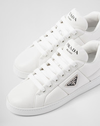 These sneakers with a sporty, minimalist attitude are made of soft nappa leather that is lightly padded for a light, elegant effect. The lettering logo stands out on the tongue while the enameled metal triangle logo decorates the upper. - Product code: 1E204N_2DL8_F0009_F_025 - Leather lining - Enameled metal triangle logo - Cotton laces - 25 mm rubber sole - Tread with geometric pattern - Removable leather-covered insole - Imported MATERIALS Leather