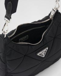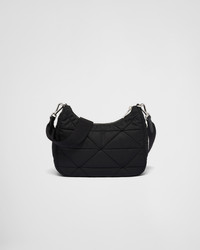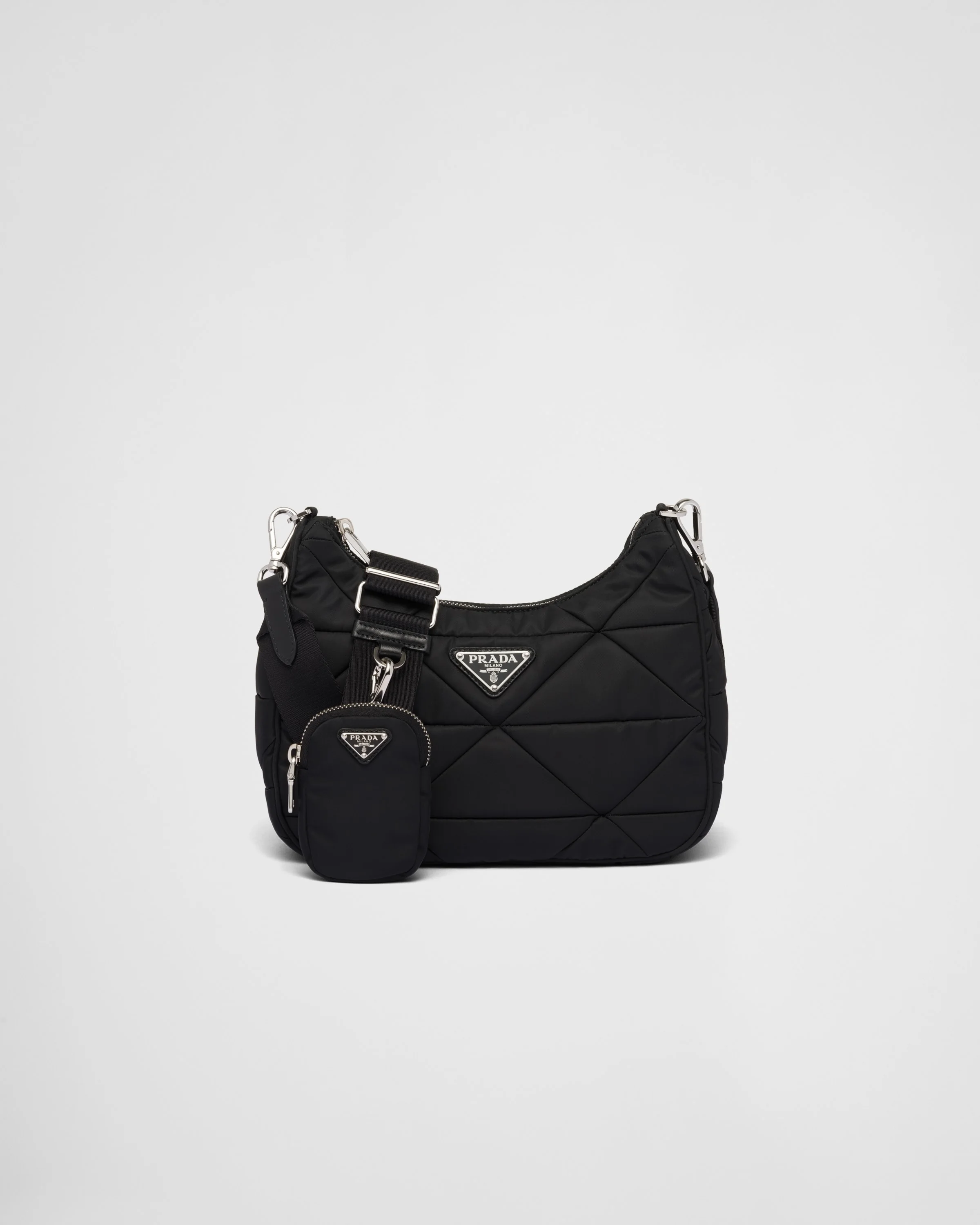 A triangle patchwork motif characterizes this padded Re-Nylon hobo bag designed to also be worn as a shoulder bag thanks to the adjustable logo-print strap. Embellished on the front with the iconic enameled metal triangle logo, the multifunctional accessory is completed with a detachable nylon zipper pouch that hooks onto the shoulder strap. For sustainable care to preserve the product's characteristics and reduce microfiber shedding, we recommend not washing the item too often. Let the product air out after every use and have it dry cleaned at a specialized ecological dry cleaners. - Product code: 1BC151_RDJN_F0002_V_B9O - Padded triangle motif - Adjustable 85 cm woven tape shoulder strap - Detachable Re-Nylon zipper pouch - Metal hardware - Enameled metal triangle logo on the front - Zipper closure - Logo-print Re-Nylon lining with zipper pocket - Imported Height: 20.5cm Width: 24cm Length: 7cm MATERIALS Main material: Recycled polyamide