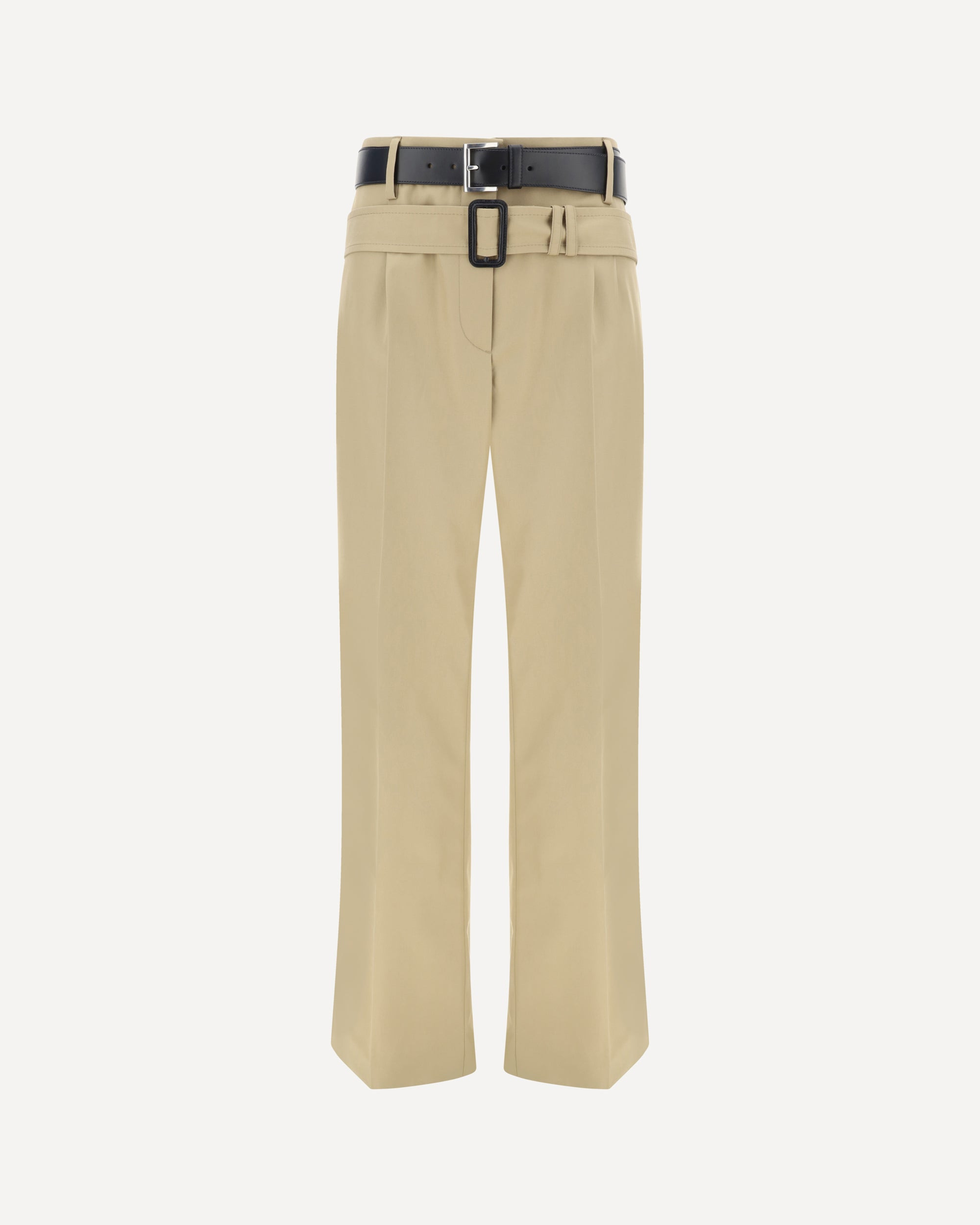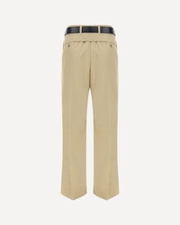 Cotton Pants by Prada, front button and zipper closure, two side slash pockets, two back welt pockets, waistband loops, adjustable and removable leather applique belt, regular fit. DETAILS sku P230IKSOOO14ZG_F0065 composition: COTTON 100% color group: BEIGE gender: WOMAN season: AW24 size chart: RTW IT category name: PANTS
