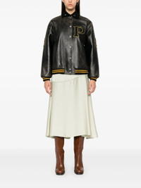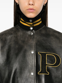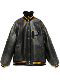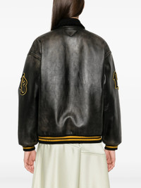 black calf leather crinkled finish faded effect front press-stud fastening ribbed band collar logo patch at the chest long sleeves number patch to the sleeve ribbed cuffs and hem two side welt pockets full lining straight hem - Color: BLACK - Made in: Italy - Designer Style ID: 58A189 S OOO 15Y0 F0002 Composition and care Outer Composition Calf Leather: 100.0%, Outer Composition Polyamide: 19.0%, Lining Composition Viscose: 100.0%, Outer Composition Virgin Wool: 79.0%, Outer Composition Elastane: 2.0%
