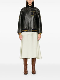 leather bomber jacket Highlights - Black - Calf leather - Crinkled finish - Faded effect - Front press-stud fastening - Ribbed band collar - Logo patch at the chest - Long sleeves - Number patch to the sleeve - Ribbed cuffs and hem - Two side welt pockets - Full lining - Straight hem Composition Outer: Calf Leather 100%, Virgin Wool 79%, Polyamide 19%, Elastane 2% Lining: Viscose 100% SIZE & FIT Model measurements Height 5 ft 10 in(1.78 m) Bust/Chest 33.85 in(86 cm) Hips 36.61 in(93 cm) Waist 26.77 in(68 cm) FittingInformation Designed to be unstructured, offering a loose fit throughout The ribbed hem offers a close, comfortable fit Firm leather offering little flexibility to maintain its durability and sturdiness Washing instructions Do Not Wash/Do Not Dry Clean