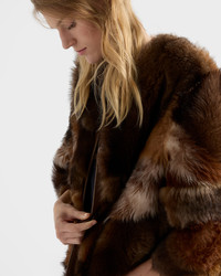 This coat, an expression of the dialogue between craftsmanship and innovation, is a unique piece made with different types of shearling on a suede base. The patchwork process and combination of different shades and textures add a dynamic character to the design defined by soft, oversized volumes. Raw-cut edges evoke the unconventional and instinctive beauty of the Fall/Winter 2025 collection. - Product code: 56A194_170T_F0IDS_S_OOO - Unlined garment - Regular fit - Wrapped button closure on the front - Three-quarter sleeves - Imported - The model is 180 cm tall and wears a size 38 Height: 100cm MATERIALS Main material: Lambskin