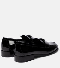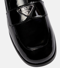 Prada adds an androgynous touch to your shoe edit with these loafers. The glossy patent leather pair have triangular logo plaques at the saddle straps. Product Details - Lining: leather - Sole: leather insole, rubber sole - Toe shape: round toe - Upper: calf leather - Made in Italy - Designer color name: Nero - Item number: P00657640 Size & Fit - True to size - European sizes - 3cm-1" heel (size EU 38)