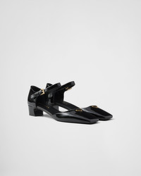 Strong, tapered lines give a contemporary character to these pumps enriched by the glossy finish of patent leather. The shoes feature a sophisticated silhouette that reinterpret classic details with touches of modern elegance. The enameled metal triangle logo embellishes the style with its distinctive signature. - 商品货号: 1I601N_069_F0002_F_035 - Strap with logo-engraved metal buckle - Enameled metal triangle logo - Leather and rubber sole with metal lettering logo - Leather-covered heel, height 35 mm - 产品标签信息