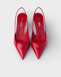 These patent leather pumps express feminine, refined elegance with contemporary allure. The triangle logo returns as a slightly padded leather detail and inspires the geometric line of the heel that enhances the silhouette with a modernist note. - Product code: 1I901M_XUW_F0011_F_DD55 - Screen-printed leather triangle logo - Leather sole and rubber heel cap with metal lettering logo - Varnished heel, height 55 mm - Imported MATERIALS Main material: Calfskin