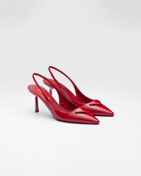 The feminine silhouette of these patent leather pumps is animated by details with contemporary elegance. The pointy slingback style is defined by the geometric heel and the leather triangle logo, lightly padded for a three-dimensional effect, that completes the shoe with modernist allure. - Produktcode: 1I901M_JHR_F0E06_F_A075 - Screen-printed leather triangle logo - Leather sole and rubber heel layer with metal lettering logo - 75 mm patent leather heel - Eingeführt