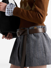 pinstripe-print skirt Highlights - Grey - Wool - Twill weave - Pinstripe print - Mid-rise - Belt loops - Pleat detailing - Decorative button detailing - Concealed front fastening - Detachable and adjustable waist belt - Two side welt pockets - Rear button-fastening jetted pocket - Thigh-length - Straight hem Composition Wool 100%