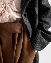 The design of this mini skirt redefines the shape and meaning of a wardrobe staple. New proportions and tailored details are combined in a unique silhouette, highlighted by the textured mouline wool enriched with a pinstripe pattern. - Product code: P133ZG_18OW_F0005_S_OOO - Loose fit - Lined garment - Elastic waistband - Front button closure - Diagonal pockets and welt pockets on the back - Imported - The model is 178 cm tall and wears a size 38 Height: 38cm MATERIALS Main material: 100% virgin wool
