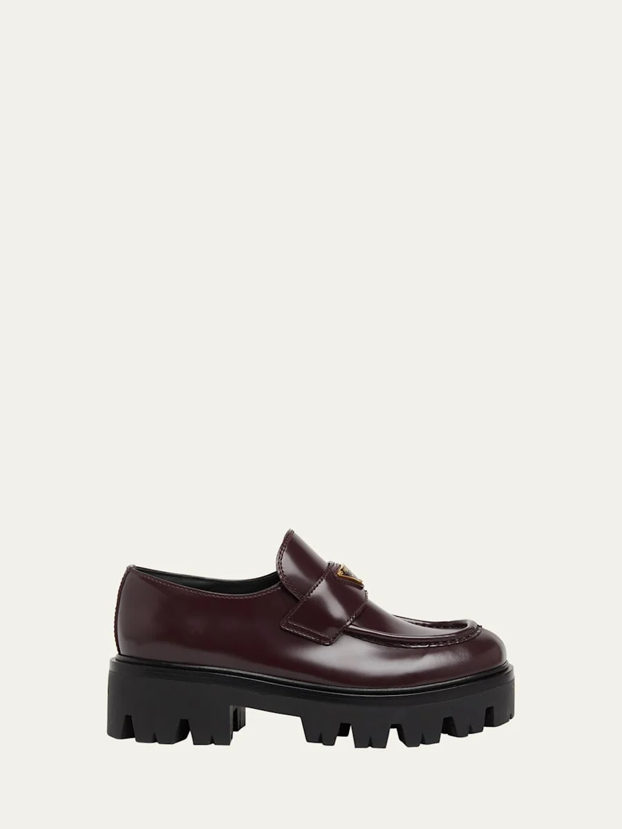 Platform Leather Triangle Logo Loafers
