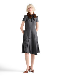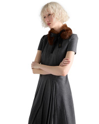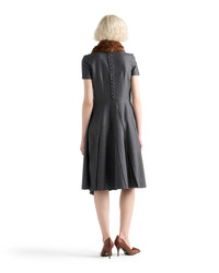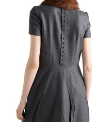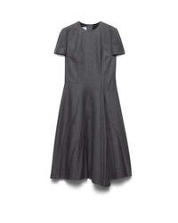 This dress with a sleek silhouette expresses sophisticated, contemporary elegance. The asymmetrical design in flannel is completed with a zipper and button closure on the back. - Product code: P3Q30_11GZ_F0480_S_OOO - Flared fit - Lined - Round neck - Back zipper and button closure - Short sleeves - Inseam pockets - Asymmetrical hem - Imported - The model is 180 cm tall and wears a size 38 Height: 108cm MATERIALS Main material: 100% virgin wool