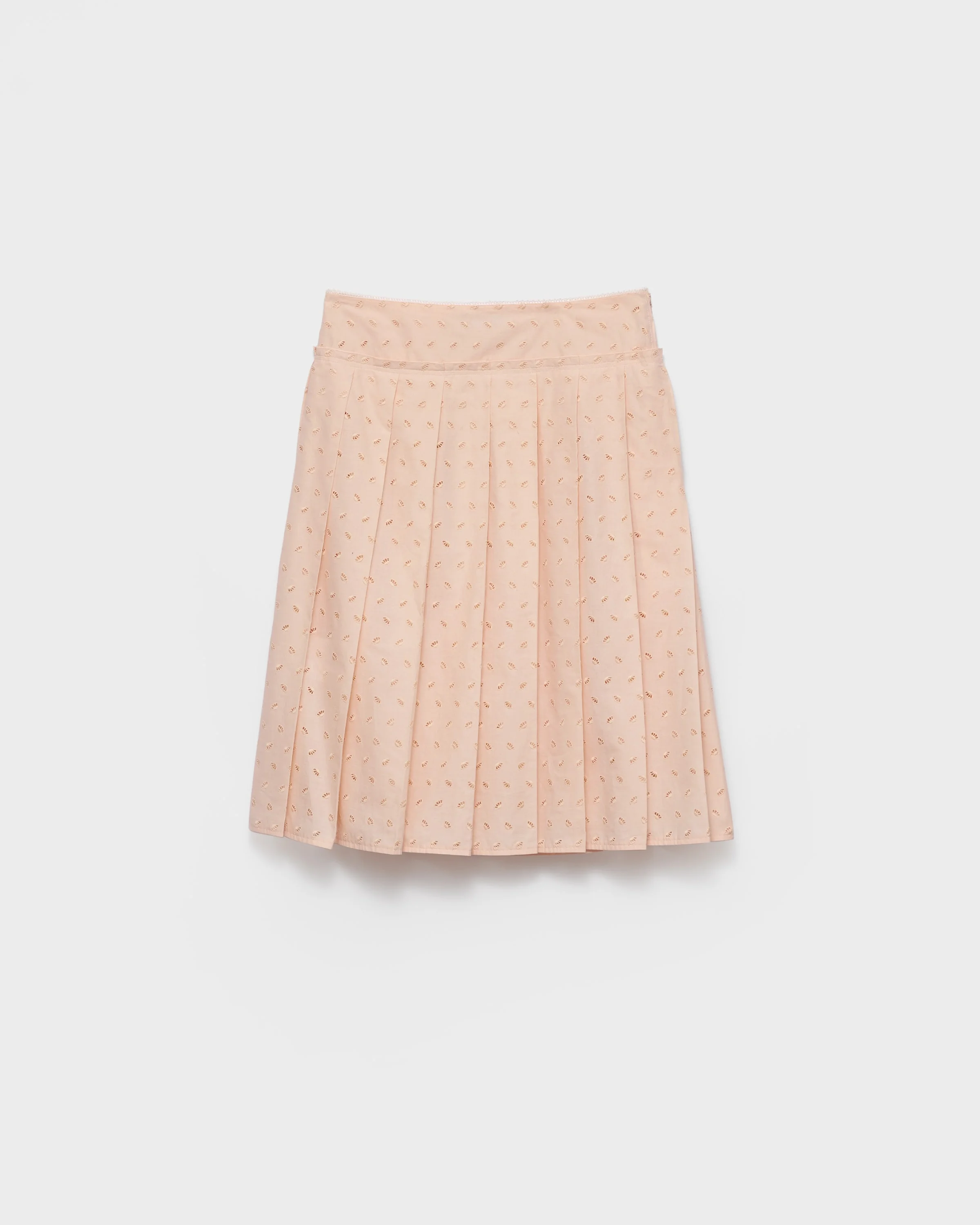 The pleated skirt is reinterpreted with the romantic allure of eyelet lace that enhances the sophisticated silhouette. Micro-embroidery creates a refined and dynamic motif that embellishes the timeless garment. - Product code: P189W_17AT_F0924_S_OOO - Side zipper closure with hook - Fabric triangle logo - Imported - The model is 178 cm tall and wears a size 38 Height: 65cm MATERIALS Main material: 100% cotton