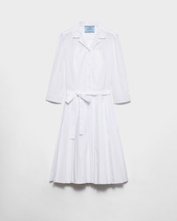 The feminine silhouette of this shirt dress is reinterpreted with minimalist style and vintage details. The bowling collar adds a refined note to the design with flared lines, emphasized by the pleated skirt. - Product code: P3P77_1XV2_F0009_S_OOO - Unlined garment - Bowling collar - Front button closure - Side zipper closure - Three-quarter sleeves with cuffs and button - Fabric triangle logo - Flared hem - Imported - The model is 178 cm tall and wears a size 38 Height: 100cm MATERIALS Main material: 100% cotton