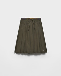This poplin midi-skirt has a light, pleated silhouette and a relaxed fit. The design plays with layering while the striped knit edge gives it contemporary allure. - Product code: P118I_187P_F0161_S_OOO - Unlined garment - Enameled metal triangle logo - Knit detail on the waistband - Imported - The model is 180 cm tall and wears a size 38 Height: 70cm MATERIALS Main material: 35% Cotton, 65% Polyester