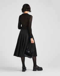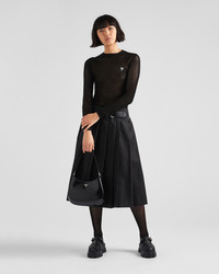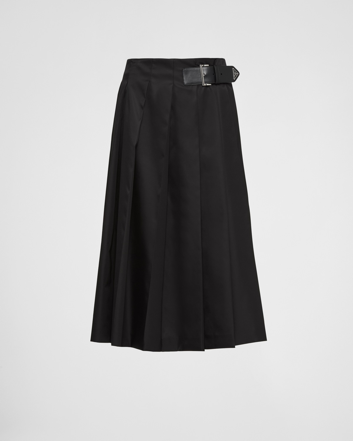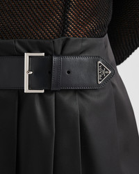 The pleated skirt, emblematic of Prada collections, is presented in the classic midi length and features a leather strap with the enameled metal triangle logo on the tip that adds an iconic note. The design is made of Re-Nylon, a sustainable fabric produced from recycled plastic materials collected in the ocean. - Product code: 21X922_1WQ8_F0002_S_222 - Unlined - Hook-and-button closure - Low rise waist - Leather strap with logo on the tip - Pleated - Height: 75cm MATERIALS Nylon