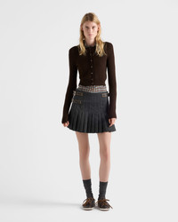Pleated rush stitch wool miniskirt