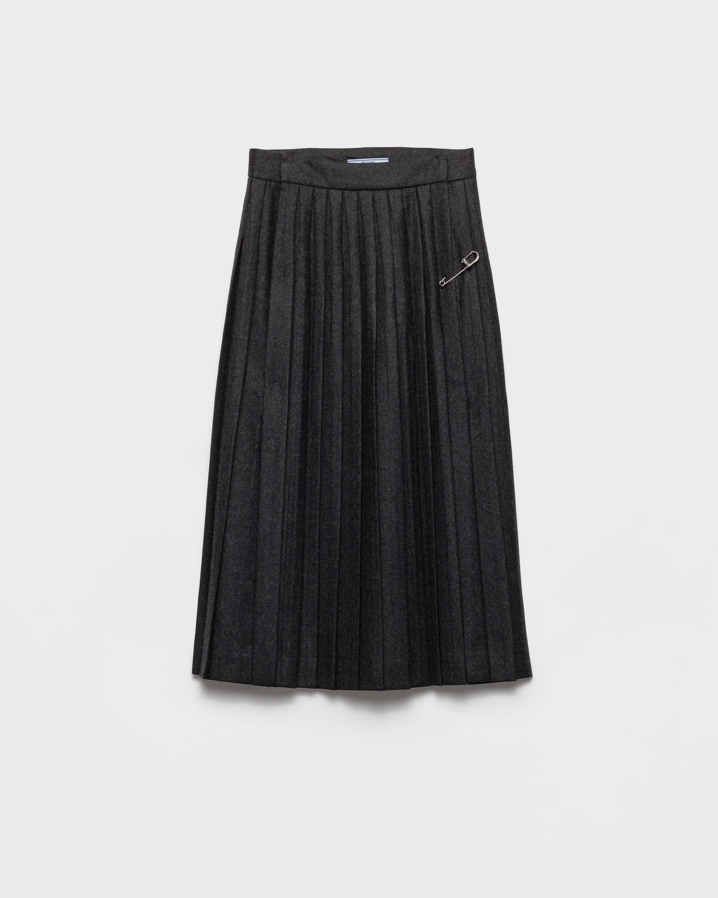 The pleated skirt with its sophisticated, feminine silhouette is reinterpreted with a design featuring sleek details. The wool flannel garment is characterized by a wraparound style with slightly flared lines. - Product code: P118Z_11GZ_F0308_S_OOO - Pleated silhouette - Front slit - Covered snap closure on the front - Imported - The model is 180 cm tall and wears a size 38 Height: 75cm MATERIALS Main material: 100% virgin wool