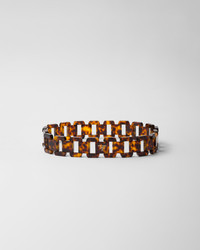 This sleek belt with refined, contemporary allure is embellished with a sophisticated tortoiseshell motif and decorated with the lettering logo. - Product code: 1CC596_2CL2_F03U2 - Engraved logo - Imported Height: 4.32cm MATERIALS Main material: Methacrylate brass