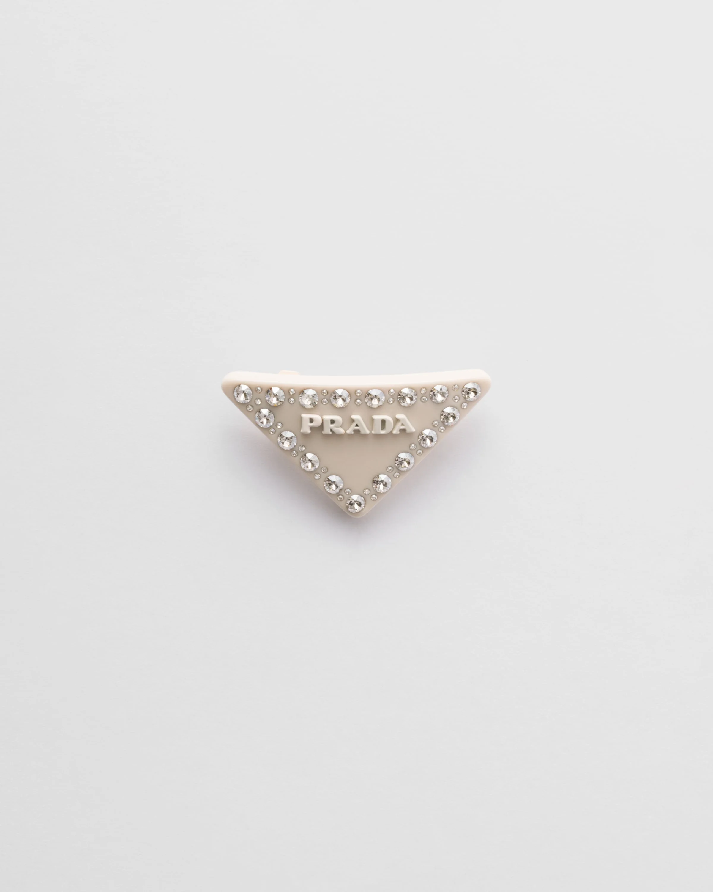 This plexiglass hair clip is covered with multifaceted crystals, creating a play on light and iridescent reflections. Logo lettering provides an iconic, luxury allure to the accessory. - Product code: 1IF090_2CD0_F03VZ - With crystals - Clip fastening - Painted metal lettering logo - Imported Height: 3.07cm Width: 5.65cm MATERIALS Main material: Brass