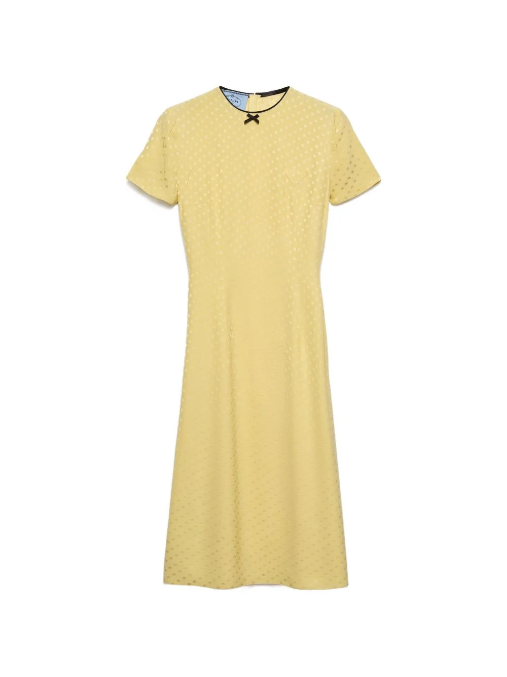 polka-dot satin dress Highlights - This sophisticated dress with romantic allure is made of satin for a light, delicate silhouette. the style is enriched with a tonal polka-dot print and round neckline with trim in a contrasting color that adds a graphic, feminine note. - Yellow - Sheath silhouette - Back zipper closure - Short sleeves Composition Fabric 100% Washing instructions Read Manufacturer Guidelines