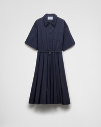 Rigor and modernism, the twofold nature embodied in Prada's dualism, take shape in this technical ponge dress with functional details. - Product code: 230731_16NA_F0008_S_OOO - Fit and flare - Unlined - Shirt-style collar - Front button closure - Conceptual triangle logo - Inseam pockets - Elasticized waist - Patch pocket on the chest - Due to the characteristics of the fabric, the garment appears wrinkled. - Imported - The model is 180 cm tall and wears a size 38 Height: 110cm MATERIALS Main material: 85% cotton 15% polyamide