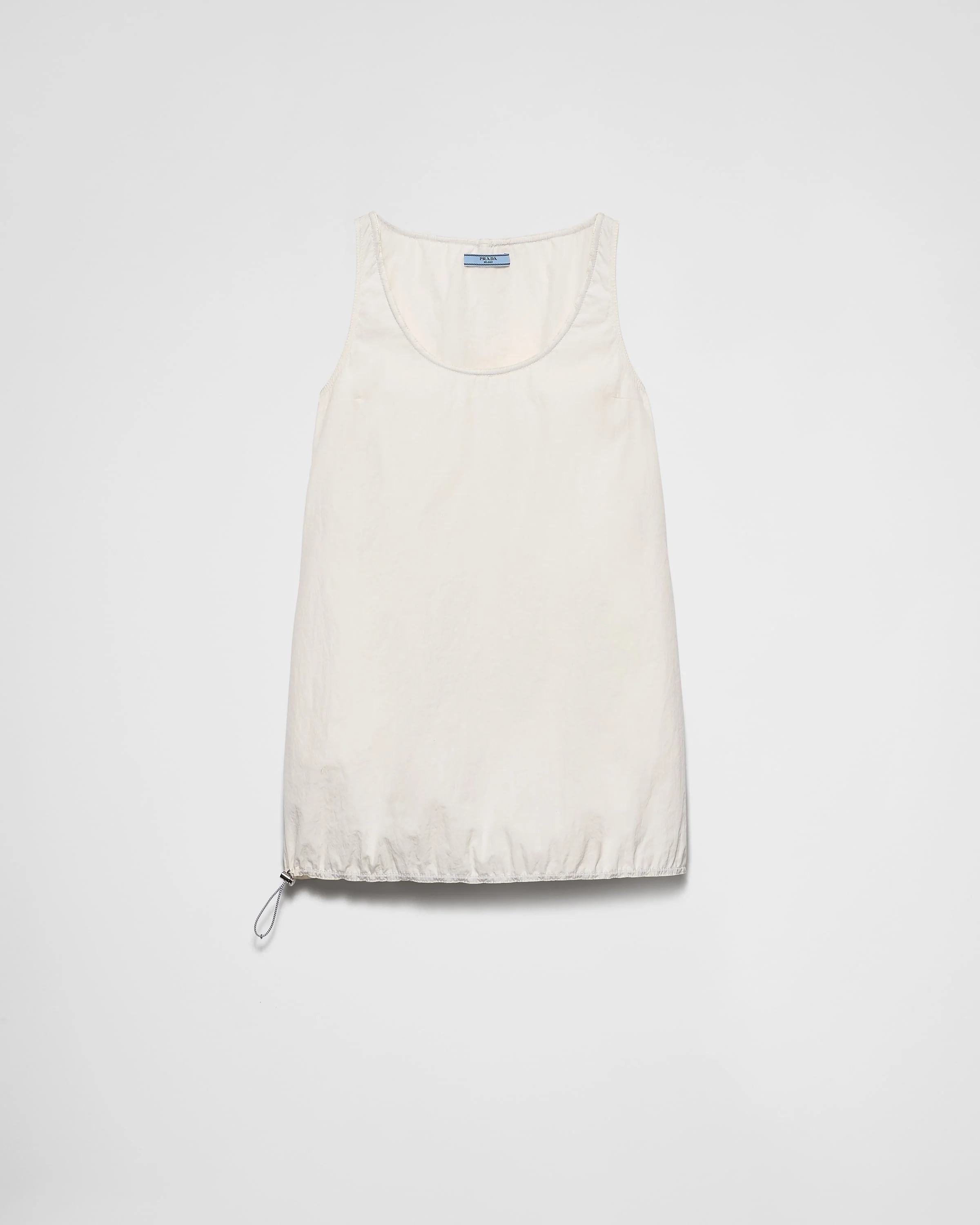 Modernist minimalism, a functional design and sophisticated workmanship: this sleeveless dress stands out for its double drawstring which gives shape to the garment. - Product code: 230725_16NA_F0304_S_OOO - Flared fit - Lined garment - Scoop neck - Conceptual triangle logo - Elasticized hem and neckline - Imported - The model is 180 cm tall and wears a size 38 Height: 80cm MATERIALS Main material: 85% cotton 15% polyamide